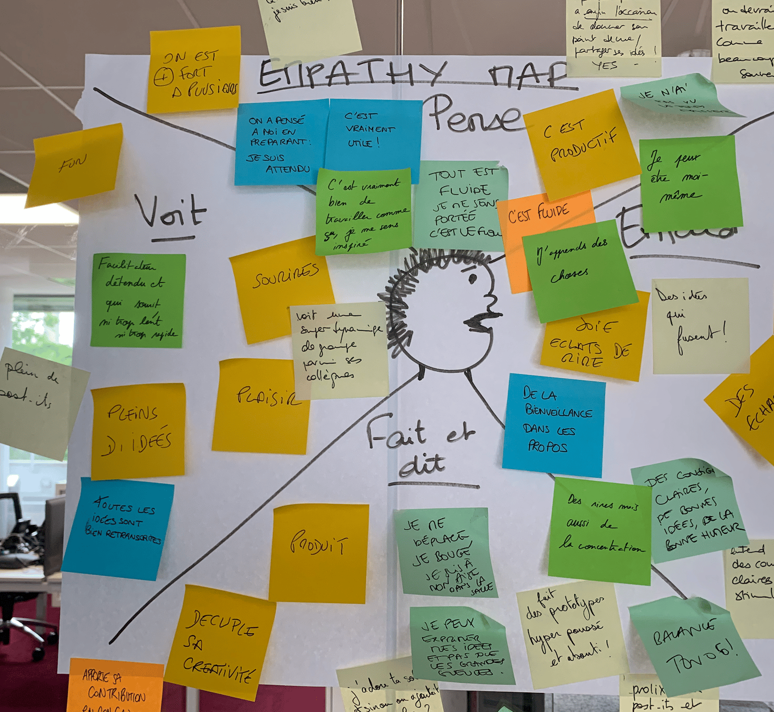 Je finirai sur cette pensée : À vous qui aimez manipuler les post-its, la prochaine fois, interrogez-vous sur ce que vous pourriez faire pour contribuer à rendre tangible et affiner l’idée ainsi rapidement griffonnée ? Et si vous bloquez à cette étape, j’en connais certains dont c’est le métier...