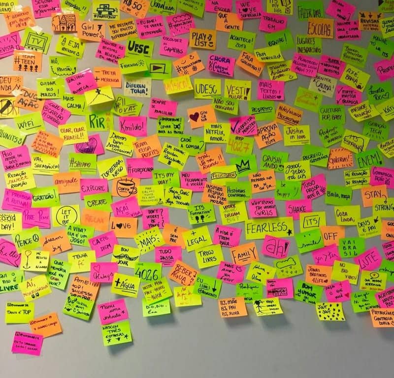 « Une étude sur les milieux de travail a démontré qu’un professionnel reçoit en moyenne 11 messages sur des Notes Post-it® tous les jours. » Adopté, donc ! Aujourd’hui le post-it permet d’échanger idées, to-do et mots doux, au travail comme dans la vie. Collés sur nos ordinateurs portables, seuls résistants papiers dans un monde du travail numérique, ou apposés sur des commandes de cockpits et machines complexes (mes préférées !), pour rendre lisible une interface pas toujours bien conçue. Il permet, par son caractère coloré, de petite taille, déplaçable et infini (chaque bloc possède 100 feuillets !), de structurer une pensée à ses prémices. Largement adopté dans le monde du scénario de cinéma, il aide à créer une histoire de façon non linéaire et dans l’espace. ans les séance créatives, chacun peut grâce à lui donner son avis de façon anonyme, communiquer par un mot clé, voir ses idées retenues et regroupées avec celles des autres, échanger et partager des idées, se sentir écouté et estimé de façon égale.
