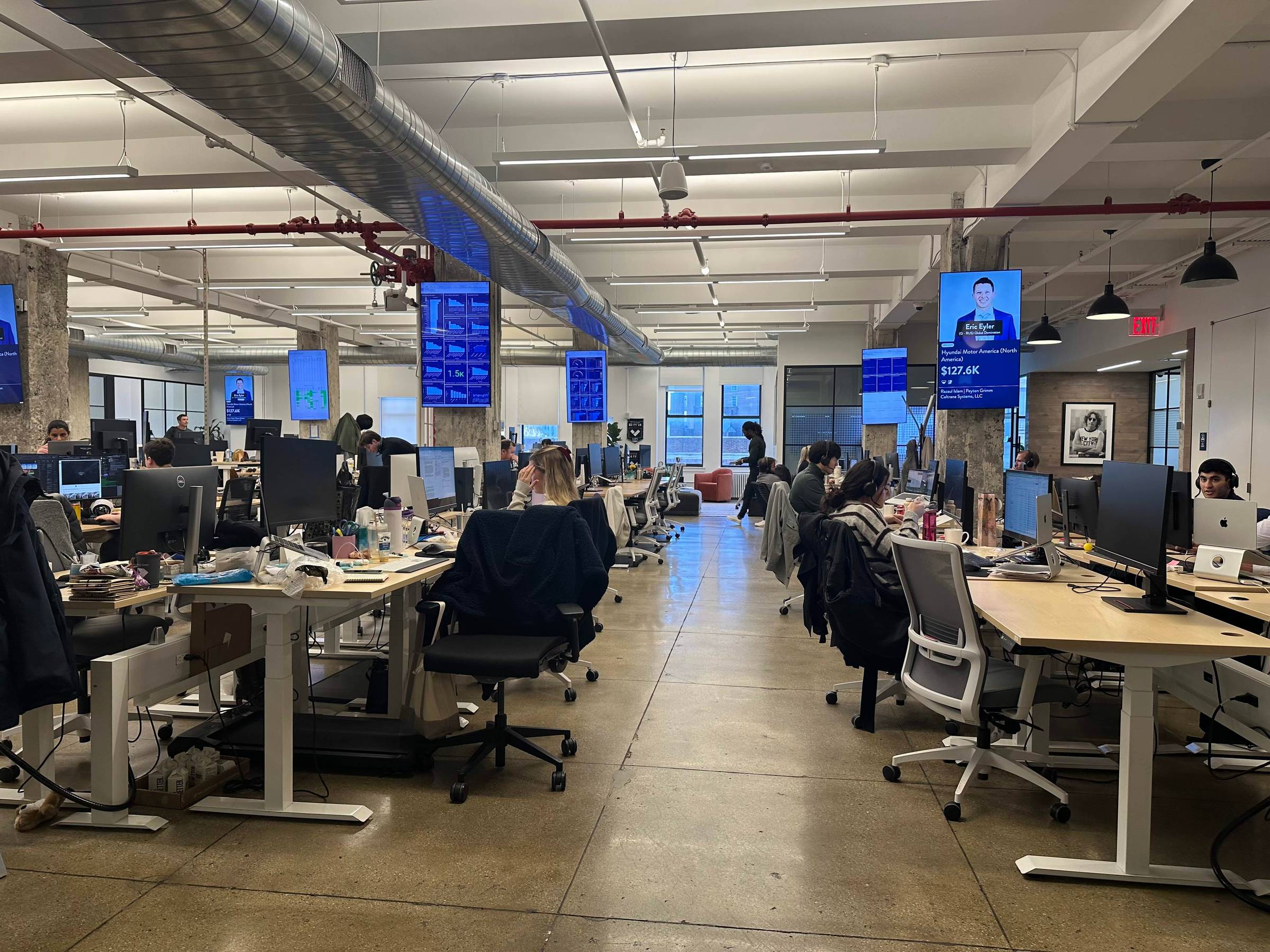 Verkada : l'énergie de la vente, made in New YorkChangement de décor chez Verkada – une entreprise spécialisée dans les solutions de sécurité. Le bureau occupe un seul étage, entièrement ouvert. L’espace est dense, vivant, traversé d’énergies… mais sobre. Peu de couleurs, peu d’artifices : un contraste avec ma précédente visite. Mon contact Delanie vient au bureau presque tous les jours, lorsqu’elle n’est pas en déplacement (souvent deux jours par semaine). Le télétravail est possible, mais ce n’est pas un rythme ancré dans son quotidien. Pour elle, venir au bureau présente les avantages de retrouver un équipement performant (grand écran, bureau réglable, fournitures), qu’elle ne souhaite pas avoir chez elle, un trajet simple en subway, qui rend la présence peu contraignante ; et surtout, de trouver un contact direct et permanent avec son équipe et son manager. Dans un environnement de sales, la proximité physique facilite les échanges : on se sollicite plus facilement, les décisions vont plus vite, le travail est plus efficace. Au bureau Verkada, on trouve :