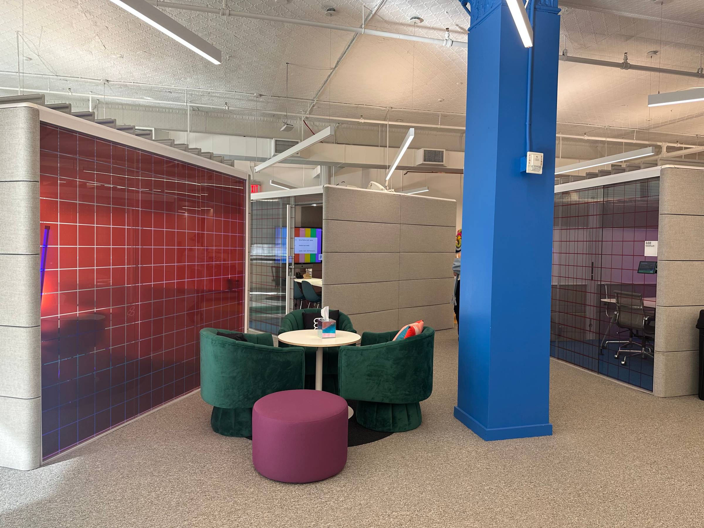 Figma : la créativité en intra-veineuseEntrer chez Figma où travaille Jackie, c’est pénétrer dans un lieu où la créativité déborde : des couleurs partout, des espaces pétillants et chaleureux, des matières variées, une touche ludique dans la décoration. Une esthétique West Coast tech, qui transpire la communauté et le plaisir d’être là. Plateforme en ligne de design collaboratif, Figma a fait de ses bureaux – répartis sur deux étages – une extension directe de son ADN et de son identité de marque, qui se traduit par :